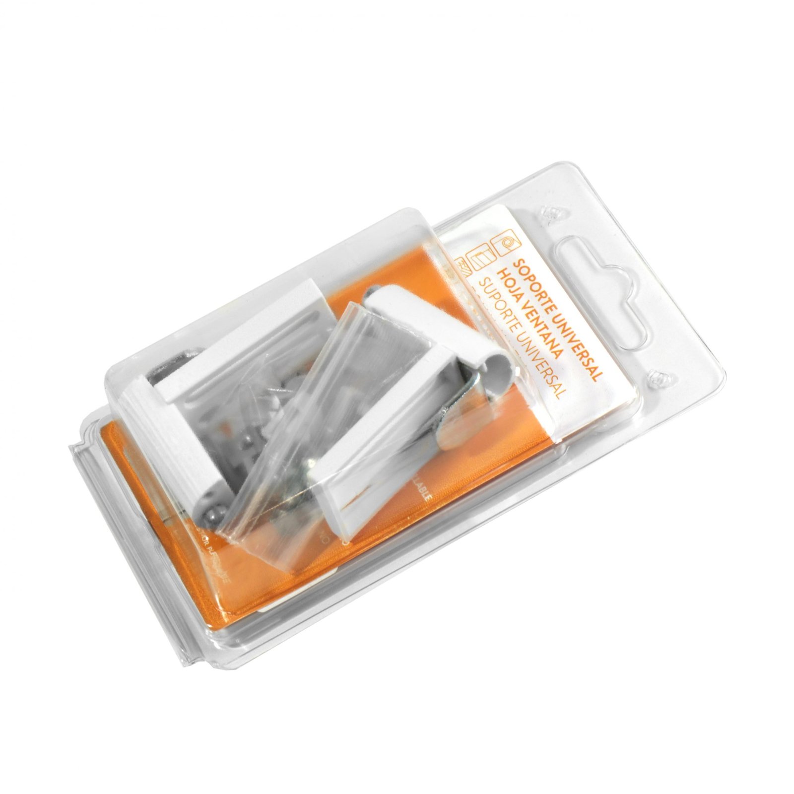 Soporte universal válido para fijar el estor en la hoja de la ventana o puerta sin necesidad de taladrar ni usar tornillos. Fácil instalación en varios tipo de sistemas de cortina estándar: enrollable, plegable, pacchetto y veneciana.